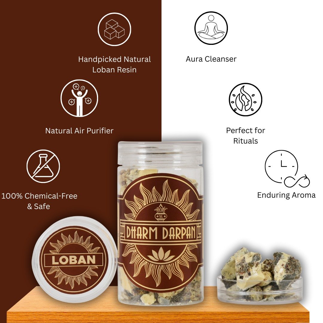 Ideal for pooja, meditation, and yoga practices, Dharm Darpan Loban, its sacred smoke, removes negativity and brings positivity with its slow-burning, calming aroma.